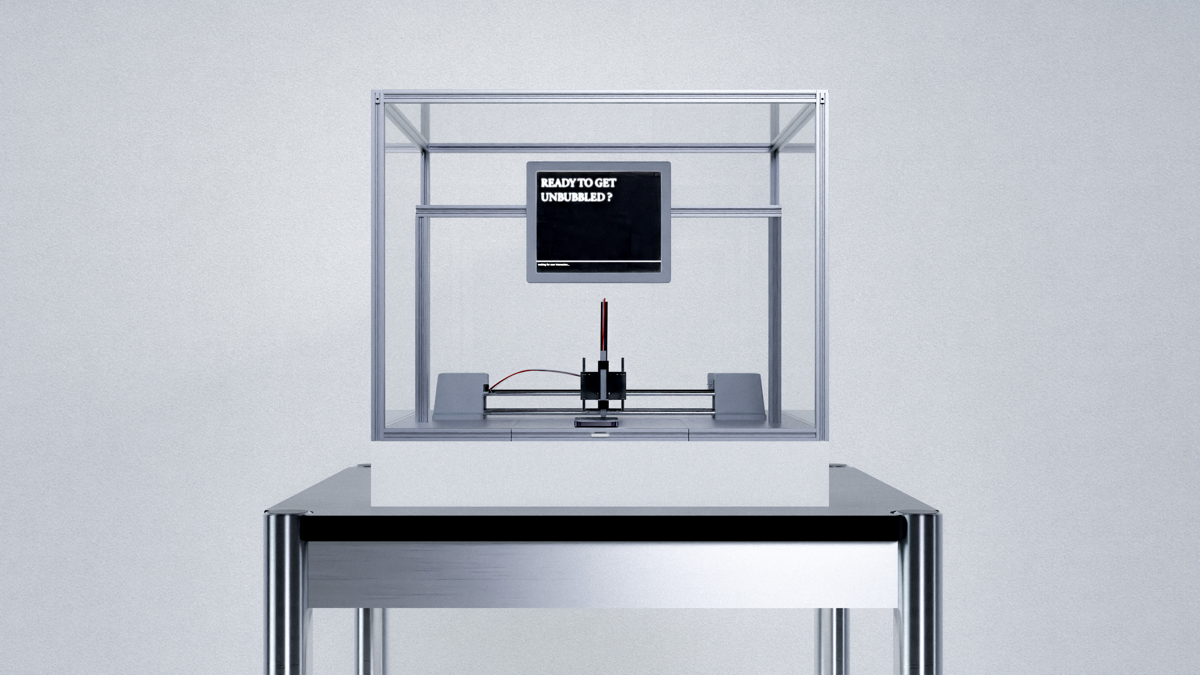 UnBubble is an interactive installation in which a robot explores a user’s smartphone to analyze their instagram usage. This setup highlights how we let algorithms collect our data, resulting in a tailor-made reality that may limits our horizons.